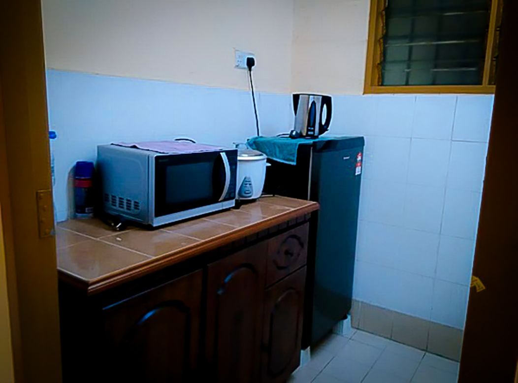 - Kemudahan : katil, peti sejuk, televisyen, periuk nasi, cerek elektrik automatic, set sofa dan lain-lain kelengkapan asas.